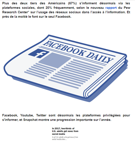 Facebook, Youtube, Twitter sont désormais les plateformes privilégiées pour s'informer, et Snapchat montre une progression importante sur l’année.